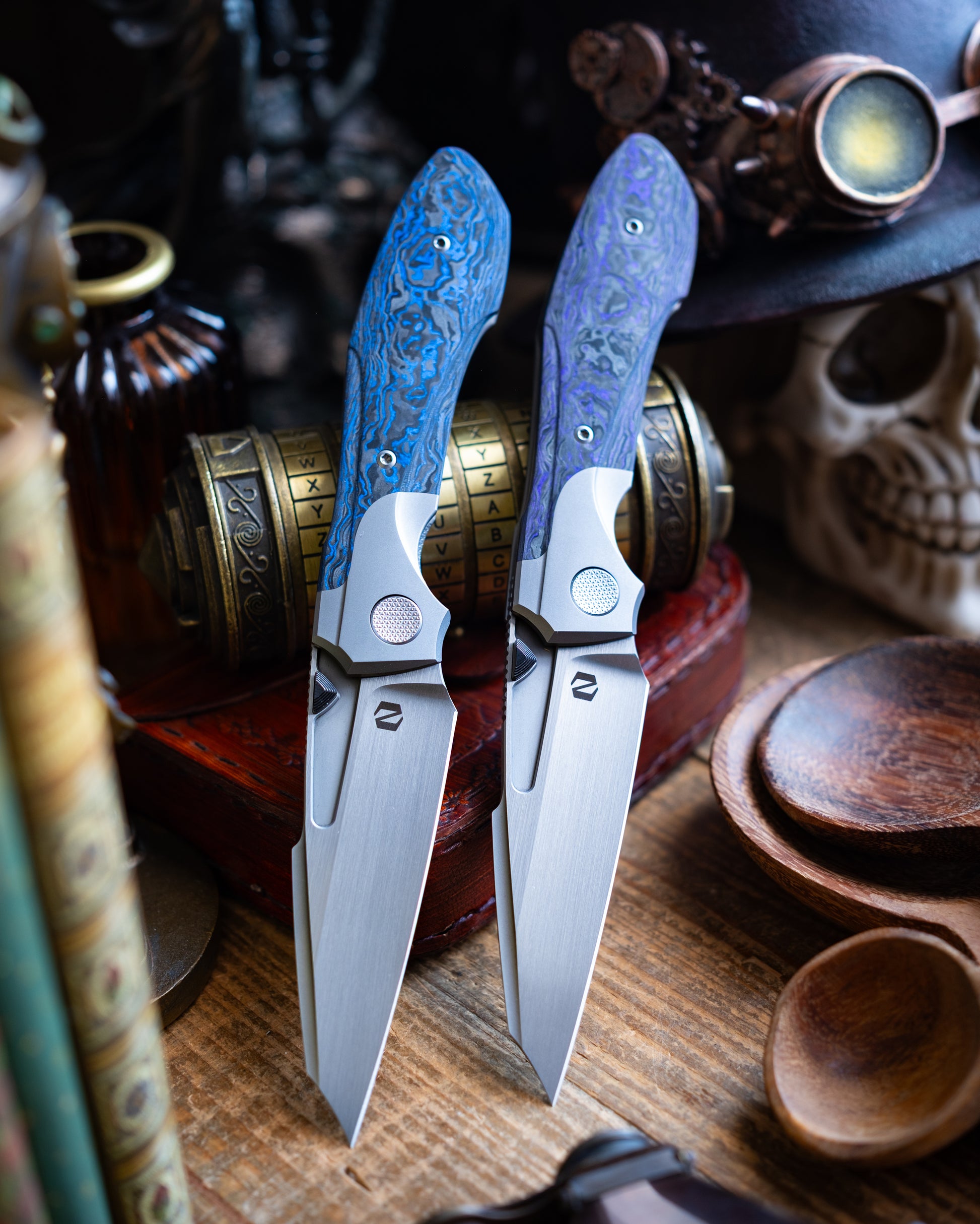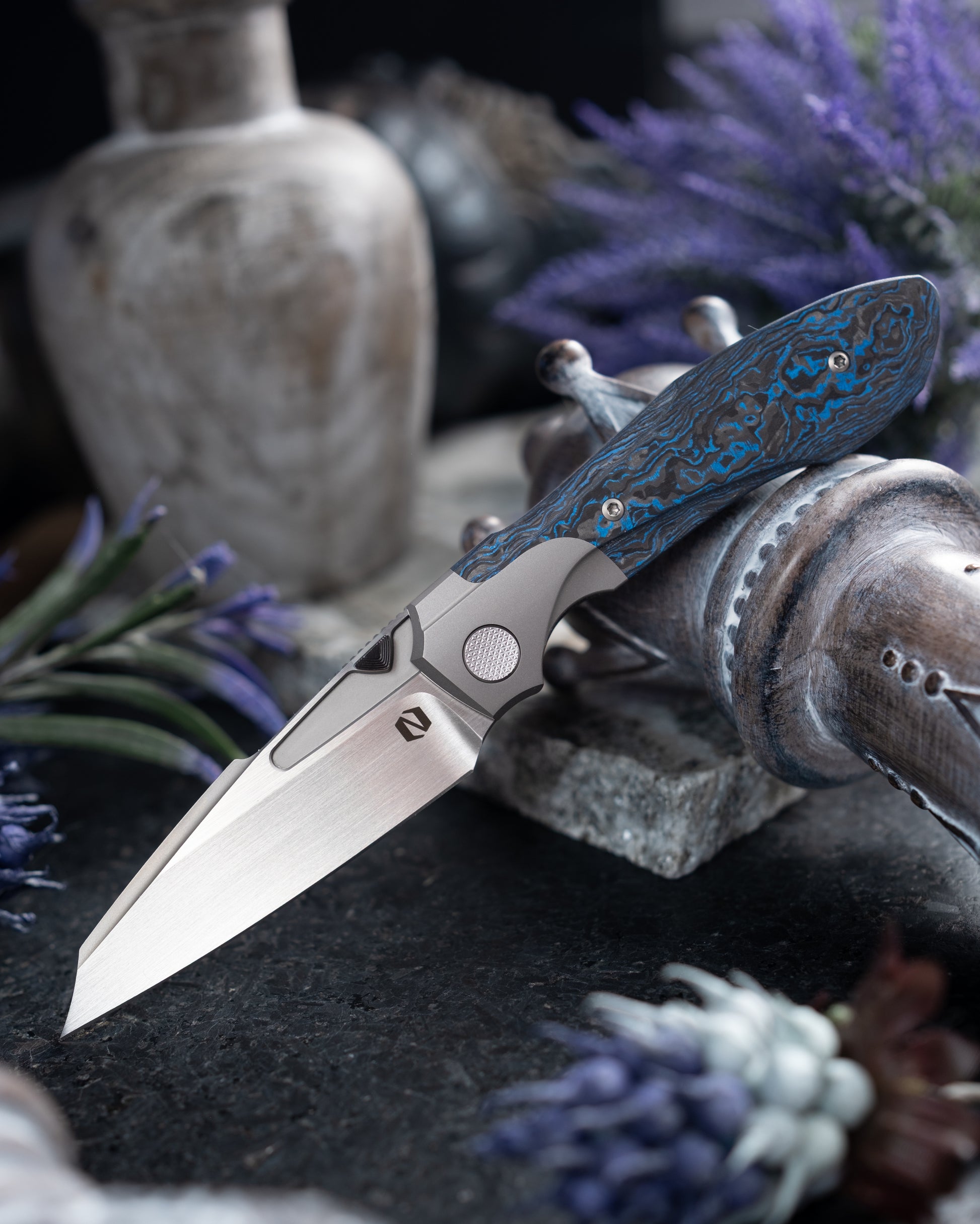 A new folder that is powerful, dynamic, and altogether uniquely beautiful. Voodoo is a bolsterlock folder with wonderfully contoured titanium handles and a sculpted frame that melts in the hand for constant comfort. Durable, slicey, and darn good looking! With its deep hollow ground blade, clip-pointed tip, and raised harpoon, Voodoo gets the job done in spades.